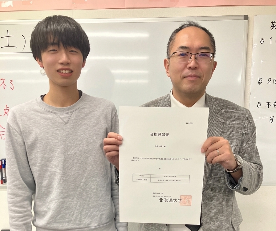 「北大の理系数学15ヵ年」を使って、ひたすら過去問の演習をしていた。わからなくなったときは初めにじっくり考え、それでも解法が分からないときは先生に教えてもらった。さらに心配な単元は類題を用意してもらった。